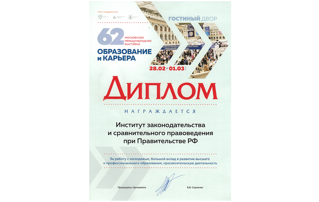 С 28 февраля по 1 марта 2026 года в московском Гостином дворе прошла 62-я Московская международная выставка «Образование и карьера». Институт законодательства и сравнительного правоведения при Правительстве Российской Федерации вновь стал участником этого значимого события, представив уникальные образовательные программы и актуальные учебные издания.
