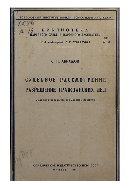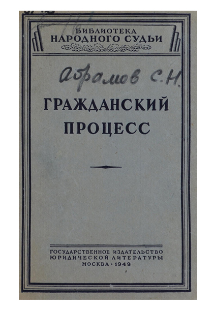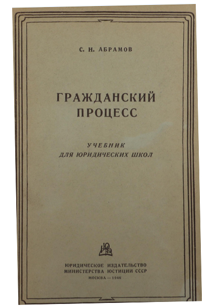 К этому времени относится и создание С. Н. Абрамовым замечательных учебников для юридических институтов «Гражданский процесс» (М., 1948) и для юридических школ «Гражданский процесс» (М., 1946), «Советский гражданский процесс» (М., 1952). Он стал также соавтором учебника для юридических вузов «Гражданский процесс» (под ред. А. Ф. Клейнмана. М., 1940), учебников «История советского государства и права СССР. Часть 2» (под ред. А. И. Денисова. М., 1948) и «История советского государства и права» (под ред. А. И. Денисова. М., 1949).