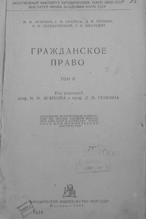1 О М. М. Агаркове см.: Михаил Михайлович Агарков // Советское государство и право. 1947. № 8. С. 78–80; Памяти М. М. Агаркова // Правоведение. 1962. № 3. С. 188–189; Халфина Р. О. Михаил Михайлович Агарков (1890–1947) // Правоведение. 1978. № 3.